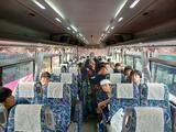 霧雨のため、バスの中での昼食となりました。