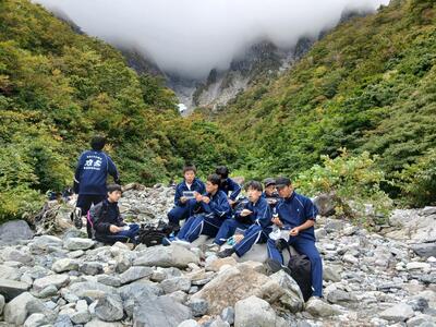 一ノ倉沢へのハイキングが行われました。雨天が続く中、本日は絶好のハイキング日和に恵まれ、目的地の一ノ倉沢出合に無事に全員、たどり着くことができました。