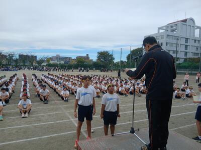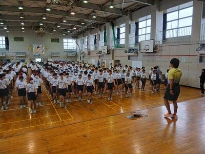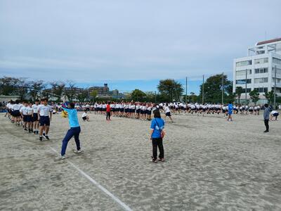 行進や歌練習、学年ごとの種目練習が行われ、体育館や校庭に生徒たちの生き生きと活動する姿が見られました。