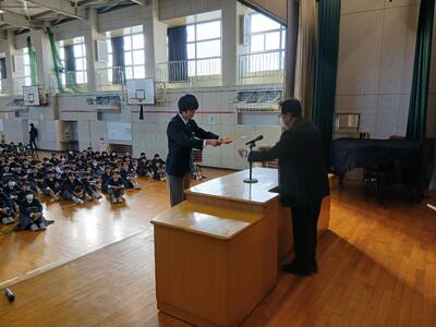 11月28日(金)1、2年生の期末テスト終了後、第43期生徒会本部役員及び後期専門委員会委員長の辞令交付が行われました。