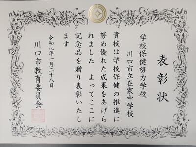 1月28日(水)令和7年度川口市学校保健等優良学校及び努力学校の表彰が行われました。