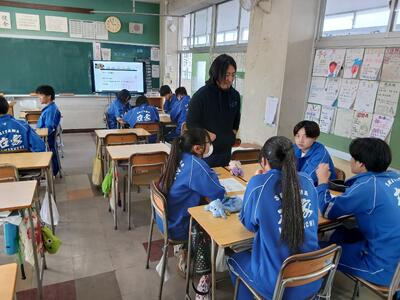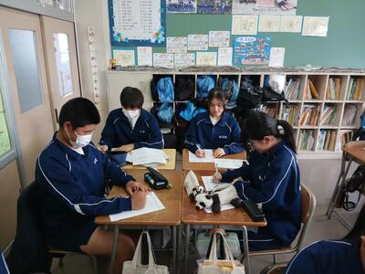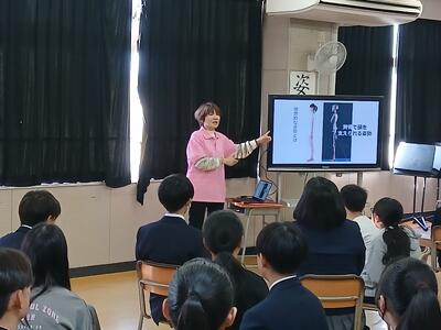 リモートで小学校・中学校の各教室に配信され、グループ内で話し合ったり、理想の正しい姿勢を確認したりしました。