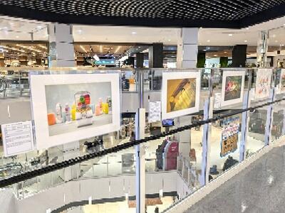 平面作品は2階と3階の各通路に分けて展示され、この展覧会を知らなかった一般の買い物客の方々も、歩くスピードを緩めて児童生徒の作品をゆっくり鑑賞していました。