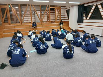 水上自然教室スタンツ大会&クラス会議の様子